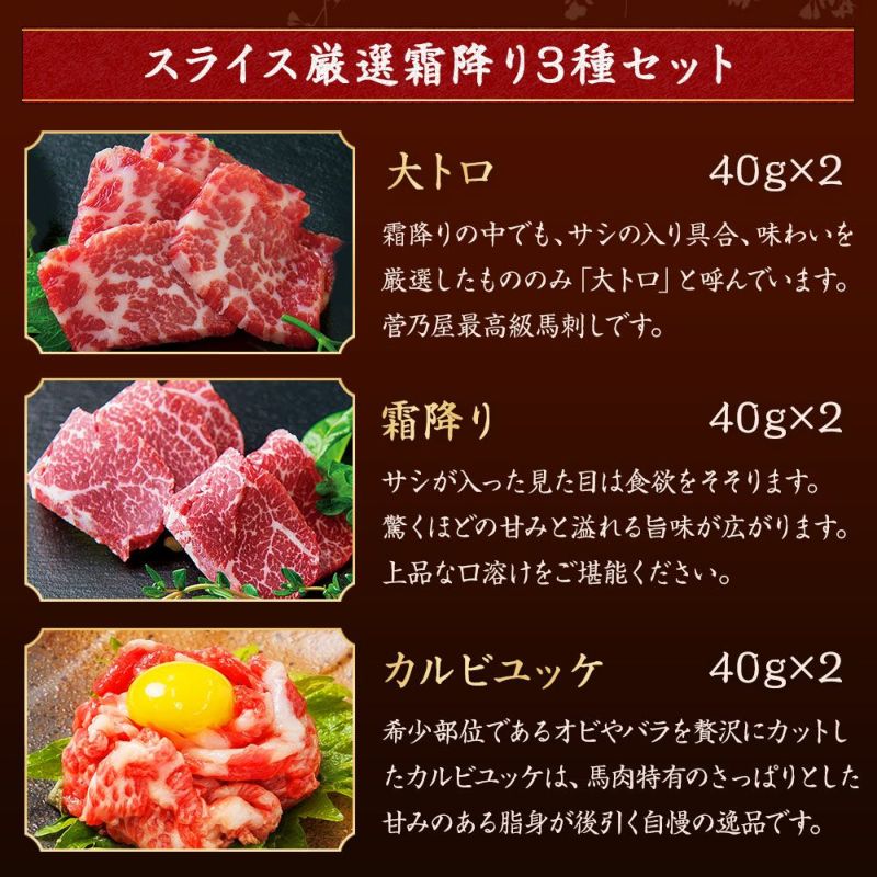 スライス厳選霜降り3種セット鮮馬刺し 熊本直送