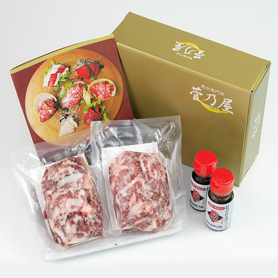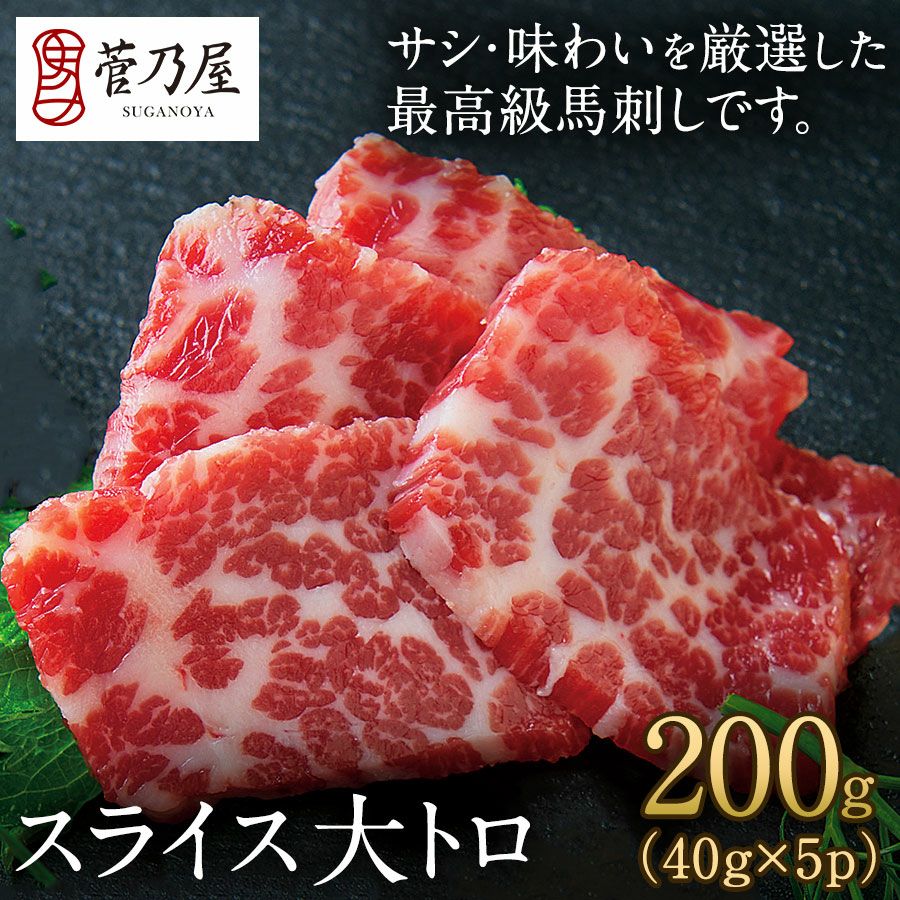 霜降りの中でも、さらに弊社の目利きがサシの入り具合、味わいを厳しく厳選したもののみ「大トロ」と呼ぶ、菅乃屋最高級馬刺しです。
