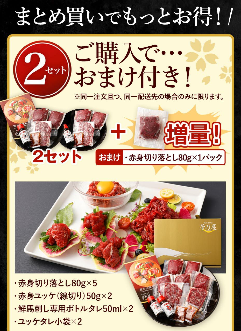 リピートが多く旨みの濃い赤身、様々な食べ方が楽しめる赤身ユッケ、とろける食感の桜うまトロを、大容量460gのお得なセットにしました。