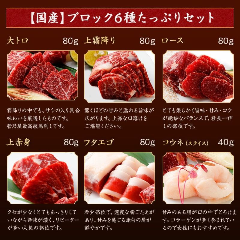 【国産】ブロック6種たっぷりセット鮮馬刺し 熊本直送